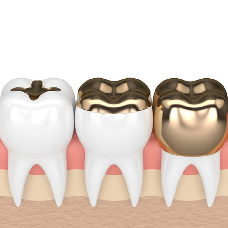 Gold crowns are known for their exceptional durability and strength. This restoration is ideal for back teeth where chewing pressure is highest. Gold does not fracture easily and offers excellent longevity.